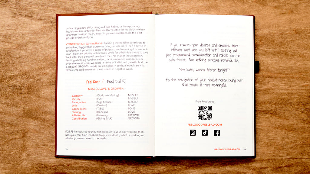 The Feel Good? Feel Bad? | Human Needs Journal isn’t just a notebook—it’s your last personal life coach in disguise. Crush your struggles, focus on what actually matters, and use those emotions that sneak into your day to your benefit. With tools to track progress, reflection, habits, and set goals that actually stick, it’s your step-by-step guide to living a life that’s balanced, fulfilling, and maybe even a little brag-worthy.
